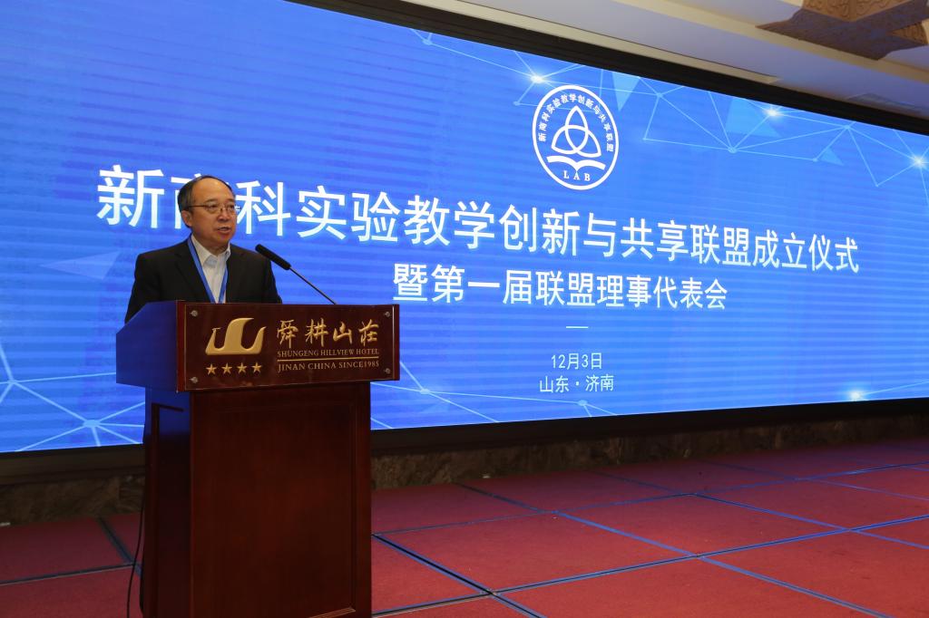 12月3日,由山东财经大学承办的全国新商科实验教学创新与共享联盟(以下简称联盟)成立仪式暨第一届联盟理事代表会议在济南举行。山东省教育厅高教处处长李霞,山东财经大学副校长陶虎,高等学校国家级实验教学示范中心联席会经管学科组组长、山东大学商学院院长戚桂杰等出席会议并致辞,实验教学中心主任丛建阁、副主任李斌与湖北经济学院实验教学中心常务副主任陈新武、副主任毛志斌及广西大学实验中心主任蒋侃分阶段主持会议。武汉大学、西南财经大学、广西大学等联盟创始高校,广西、湖北地区联盟派出代表以及山东大学、山东师范大学等联盟成员代表参加会议。会议采取现场和网络直播的方式同步进行,来自全国94家高校、企业代表100余人参加了会议。