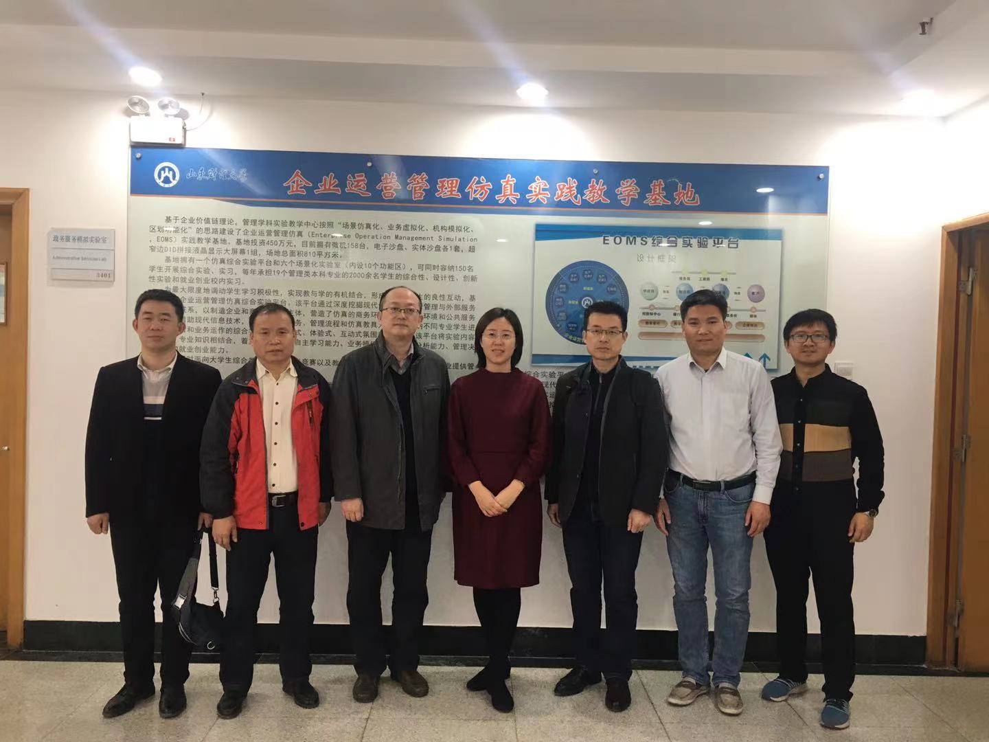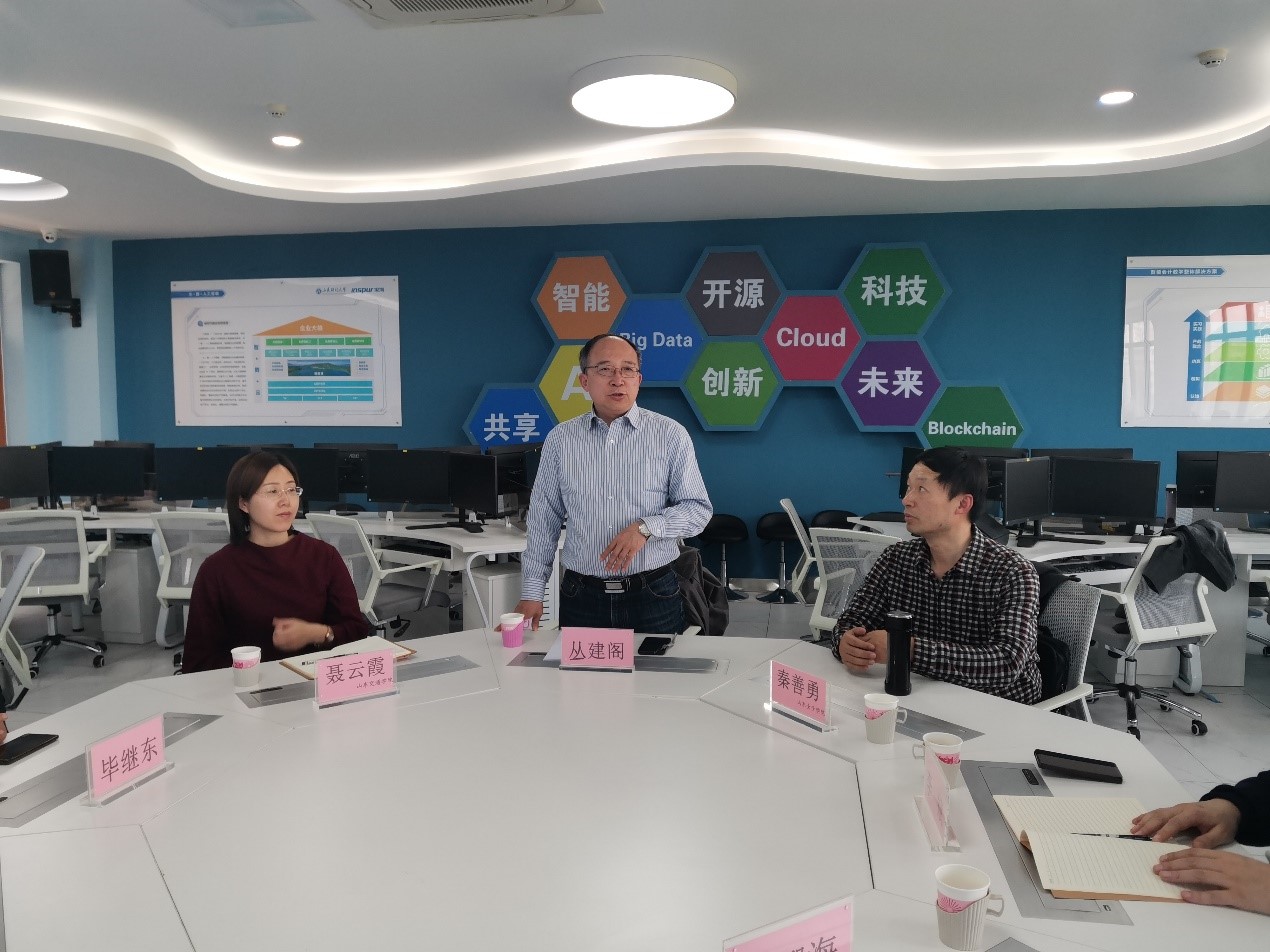 丛建阁主任首先对聂云霞副院长、秦善勇副院长一行到访表示热烈欢迎,然后汇报了建立山东省区域内高校经管类专业优质实验资源共建共享联盟的工作进展,介绍了全国高校实验资源共享联盟理事会及20多个分中心的情况,并对我校在实验资源开放共享方面的思考和实践及“共商、共建、共治、共享、共赢”的合作理念做了深入阐述,同时他也欢迎交通学院和女子学院老师分享各自的优质资源。李斌副主任回顾了十多年来企业运营管理仿真课程和实验室从初创到目前百人教师团队和全校大规模开课的发展历程,对共享联盟未来的前景进行了美好的展望。毕继东老师介绍了目前在全校开展的双创课程设计思路,讲述了如何通过大学生创新创业必修课让学生了解商务运行总体环境及自己专业在商务运行环境中所处的位置,从而明晰本专业课程进一步强化学习的方向。毕继东、葛培波、夏兆敏老师分别回答了老师们关心的问题。