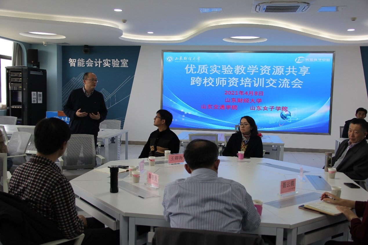 2021年4月8日,实验教学中心在燕山校区举办了第三期优质实验资源共享跨校师资培训交流会。山东交通学院经济管理学院副院长聂云霞、山东女子学院工商管理学院副院长秦善勇一行共17人来访,工商管理学院毕继东、葛培波、夏兆敏老师,中心主任丛建阁、副主任李斌、主任助理王卿海及办公室主任王志、教务部主任李建辉参加会议。
